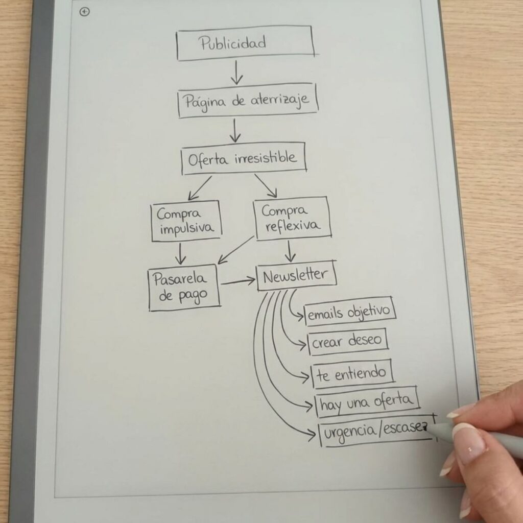 Yo misma grabo mi pantalla para ti. Con tu «Diario» delante, te explicaré paso a paso cómo conectar los puntos que ahora no ves. Te enseñaré por qué tu cliente no compró antes, qué gatillos mentales necesita activar ahora y cómo usar la psicología a tu favor. Esto es marketing quirúrgico aplicado directamente a tu caso real, listo para implementar sin perder tiempo en teorías generales.
